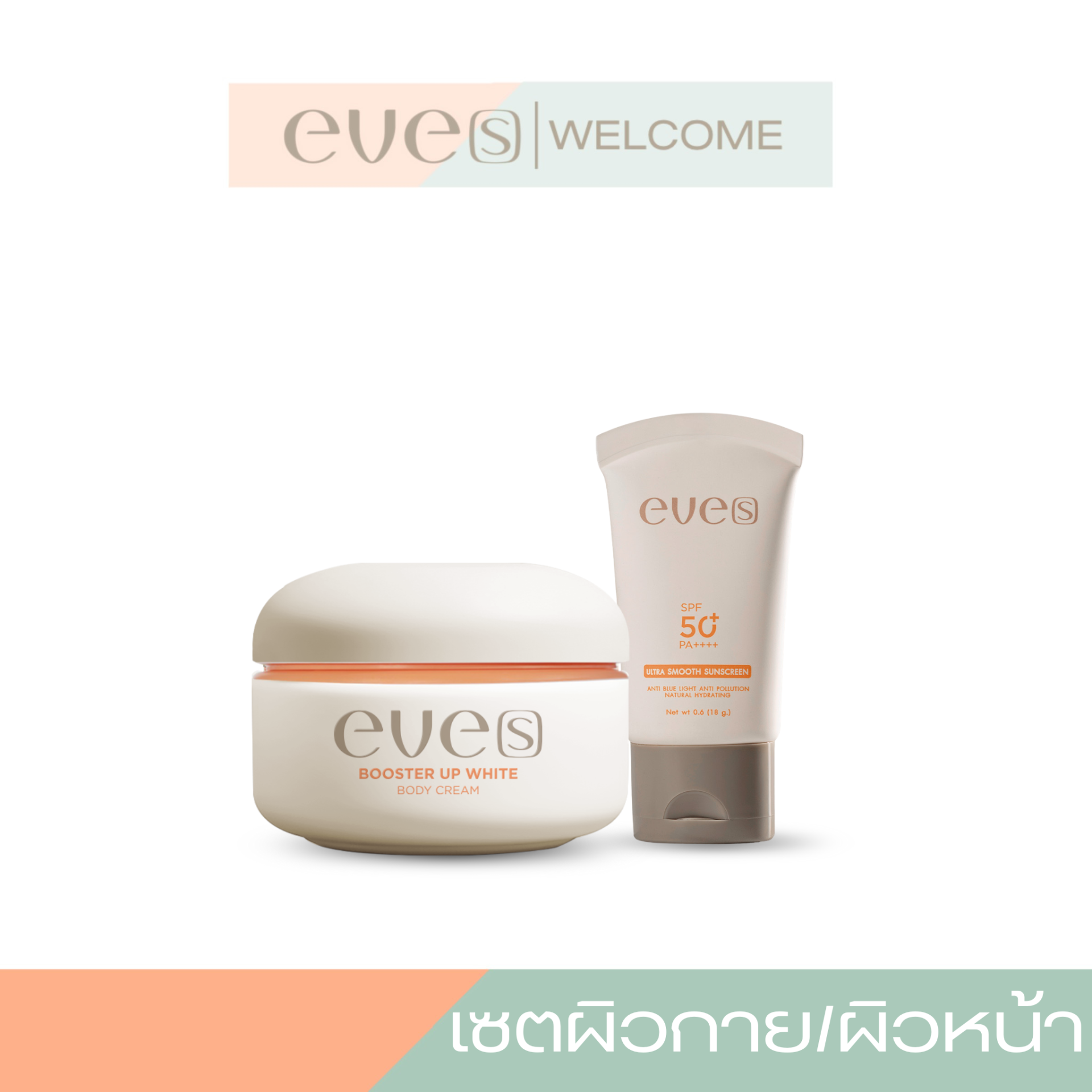 NEW EVE'S บูสเตอร์ส้มใหม่ และ กันแดดอีฟส์ บูสเตอร์ส้มบำรุงกายกระจ่างใส เนียนนุ่ม กันแดดเนื้อสมูส เกลี่ยง่ายไม่เยิ้มไม่หยา